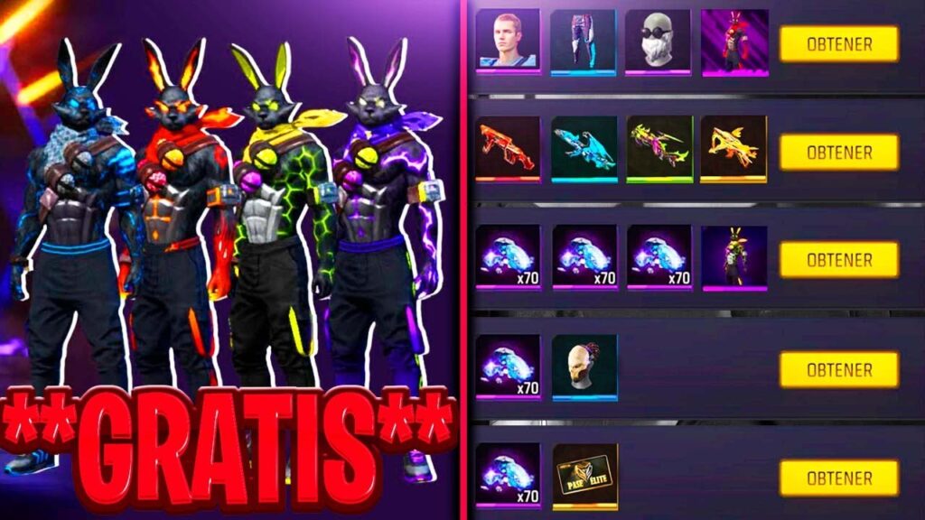 ¿Te imaginas entrar al campo de batalla con un traje legendario, un emote exclusivo y tu arma con skin dorada sin haber gastado ni un solo diamante? Gracias a estos códigos, es totalmente posible. Algunas de las recompensas que se están distribuyendo en 2025 incluyen: